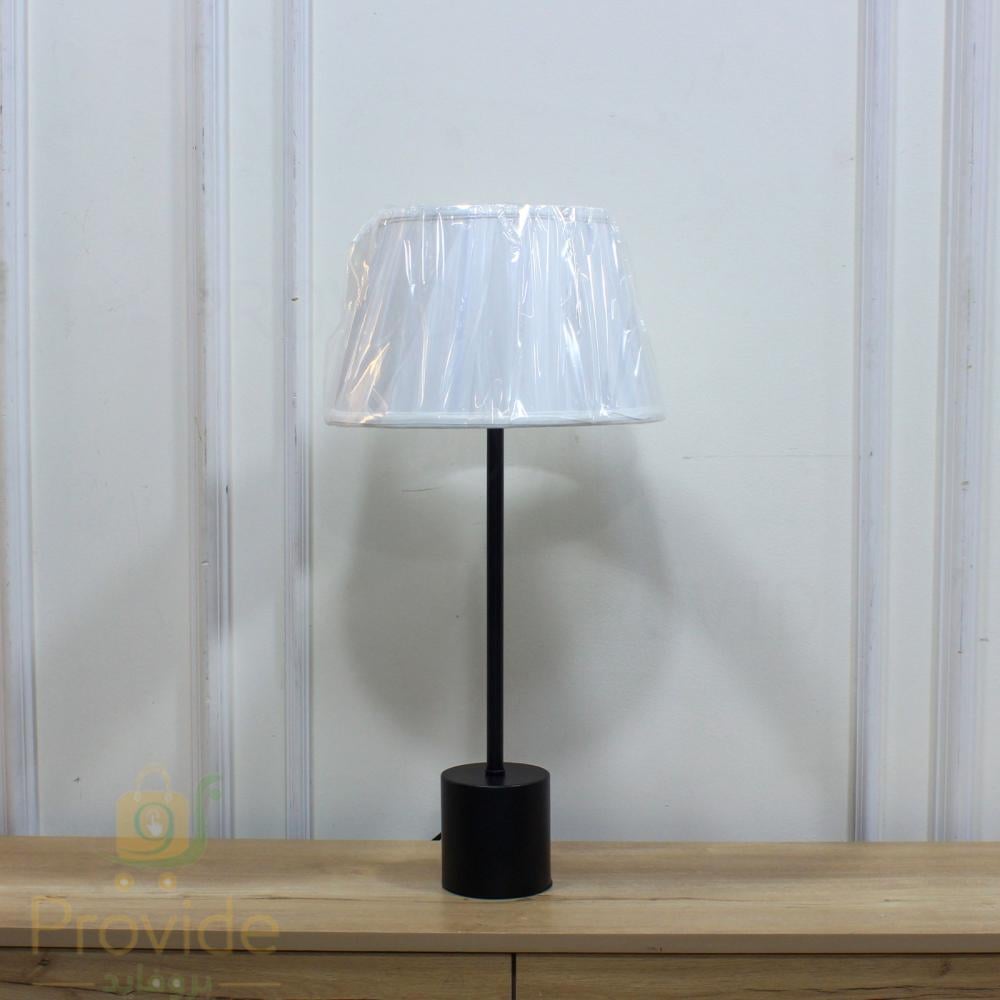 أباجورة طاولة بتصميم أسود وغطاء أبيض