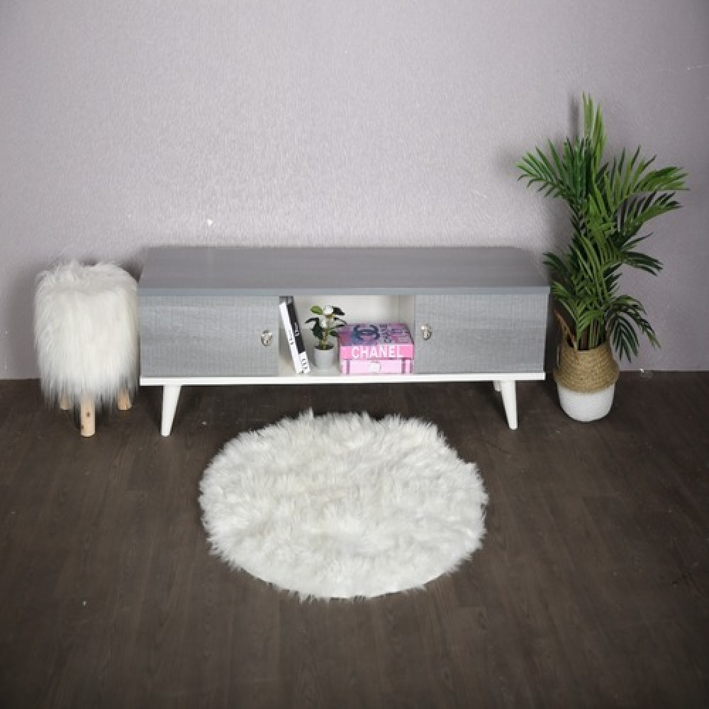 طاولة بلازما أنيقة باللون الرمادي الفاتح بتصميم عصري مميز، تجمع بين البساطة والوظيفة. تحتوي على مساحة تخزين وسطية مفتوحة مناسبة للكتب أو أجهزة الوسائط، بالإضافة إلى أبواب جانبية توفر مساحة إضافية لإخفاء المستلزمات. مرتكزة على أرجل بيضاء مائلة تمنحها لمسة عصرية راقية، لتكون خيارًا مثالياً لغرفة المعيشة التي تبحث عن الأناقة العملية في آن واحد.