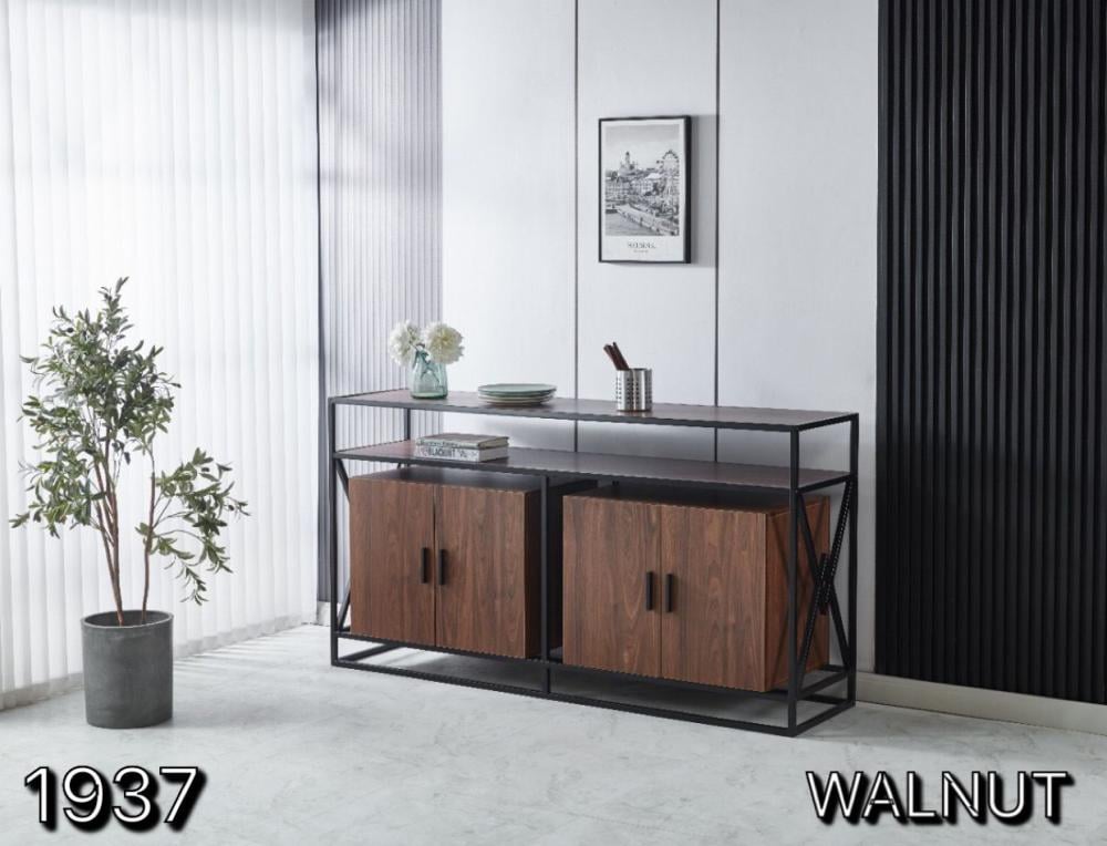 بوفية يتميز بتصميم صناعي أنيق يمزج بين الخشب والمعدن