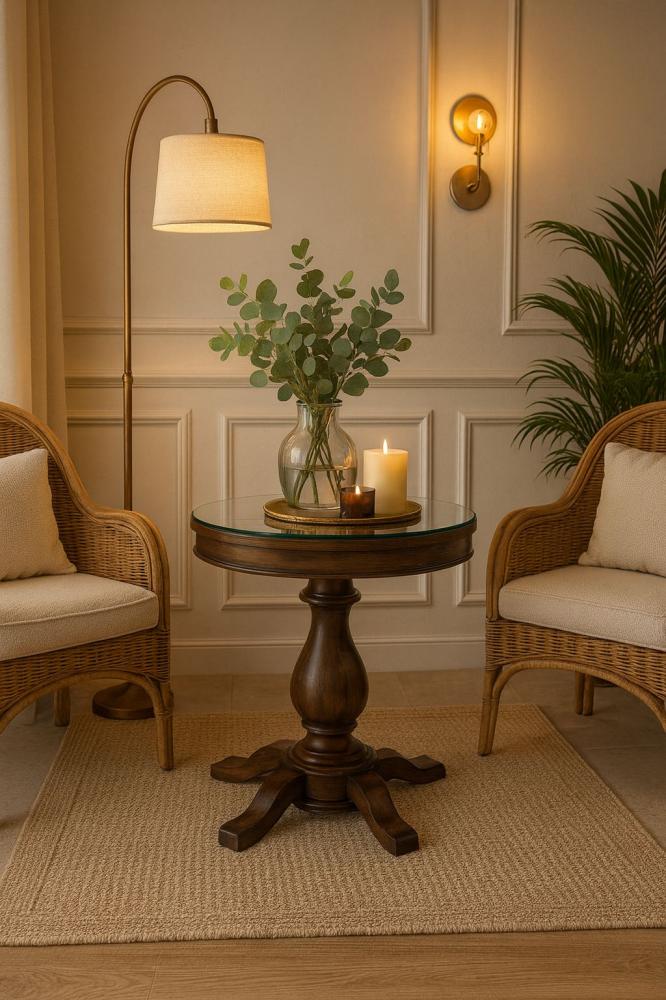 طاولة مثالية للاستخدام في الاستقبال أو صالات الجلوس، حيث تجمع بين الجمال الكلاسيكي والعملية، وتتماشى بشكل رائع مع الأثاث الخشبي أو الكلاسيكي العصري.