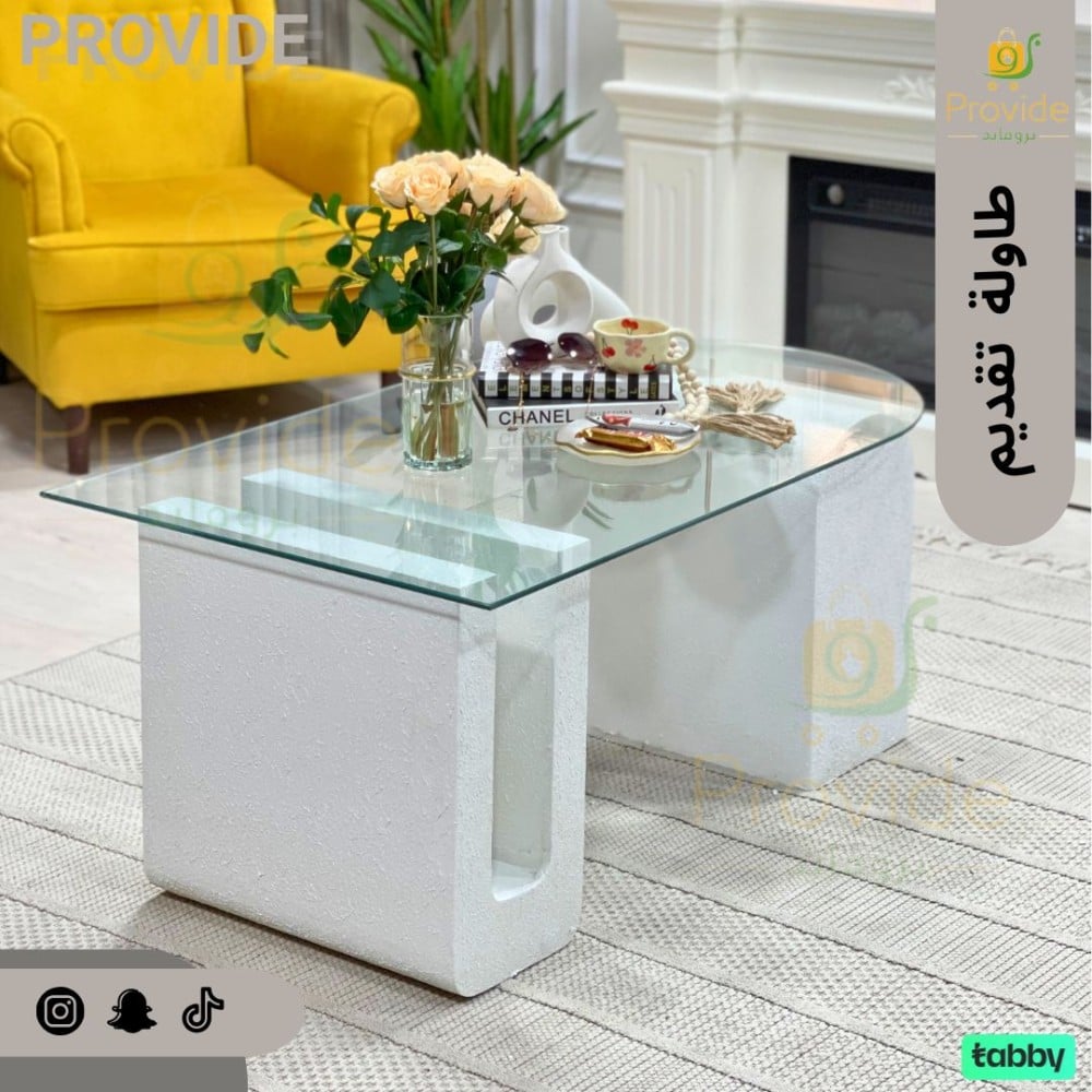 تضفي لمسة من الشفافية والأناقة: السطح الزجاجي يتيح رؤية الديكور المحيط ويضفي شعورًا بالاتساع، مما يجعل هذه الطاولة إضافة رائعة لأي غرفة.