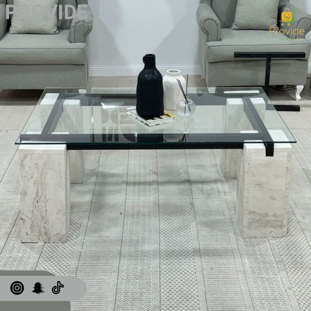 أضف جمالاً طبيعياً إلى مساحتك مع طاولة تقديم ترافنتينو الفاخرة. تتميز هذه الطاولة بسطح زجاجي شفاف يعكس الأناقة والبساطة، مع قاعدة من الحجر الطبيعي الترافنتينو الذي يضفي لمسة فريدة ومتميزة على تصميمها. إنها الخيار المثالي لكل من يبحث عن مزيج متناغم بين الطبيعة والعصرية في ديكور غرفة المعيشة.