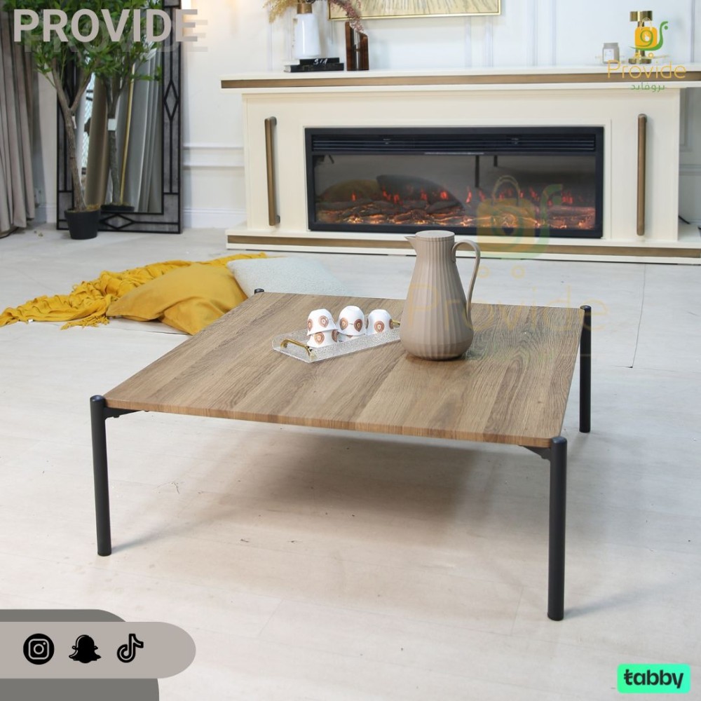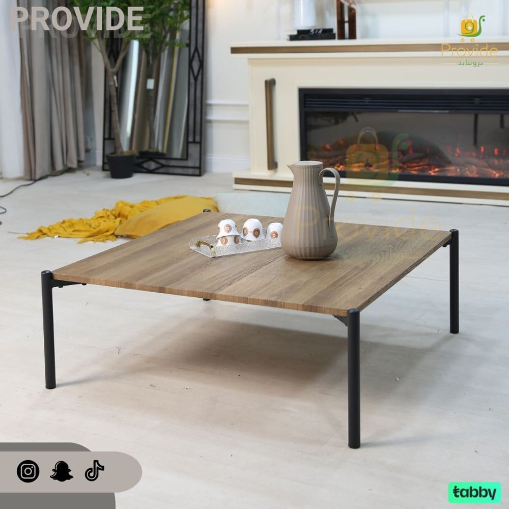 طاولة تقديم بلون بني خشبي مع قاعدة معدنية سوداء