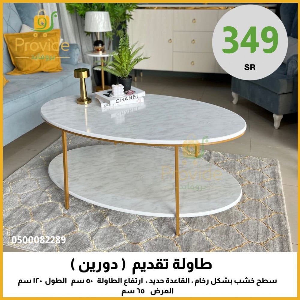 طاولة تقديم دورين سطح خشب شكل رخام قاعدة حديد