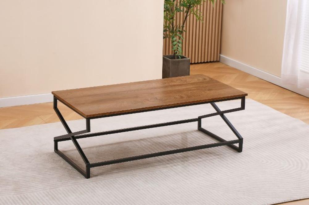 طاولة تقديم مستطيل السطح خشب القاعدة حديد