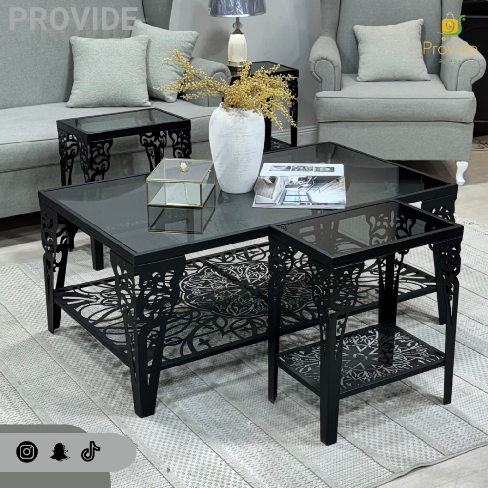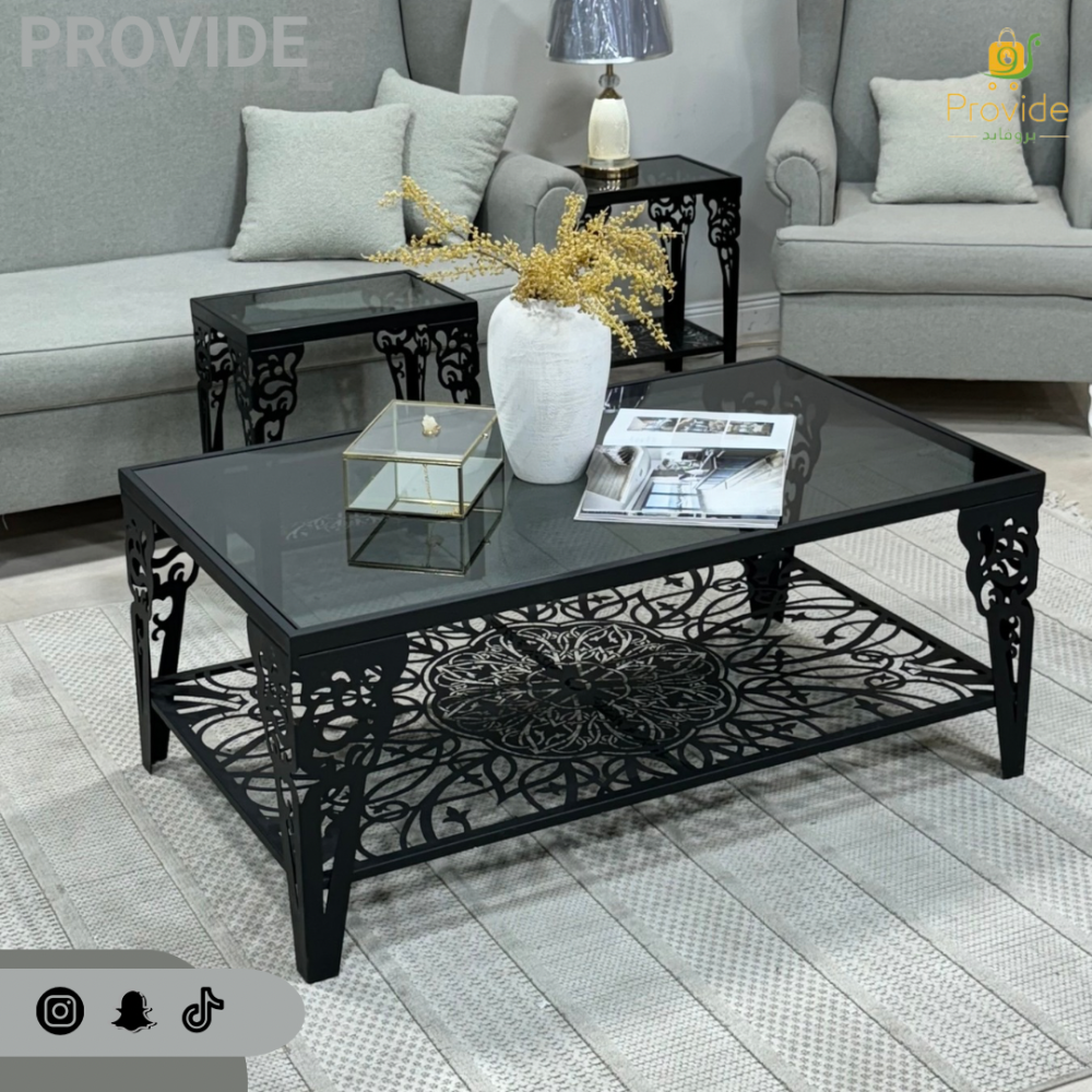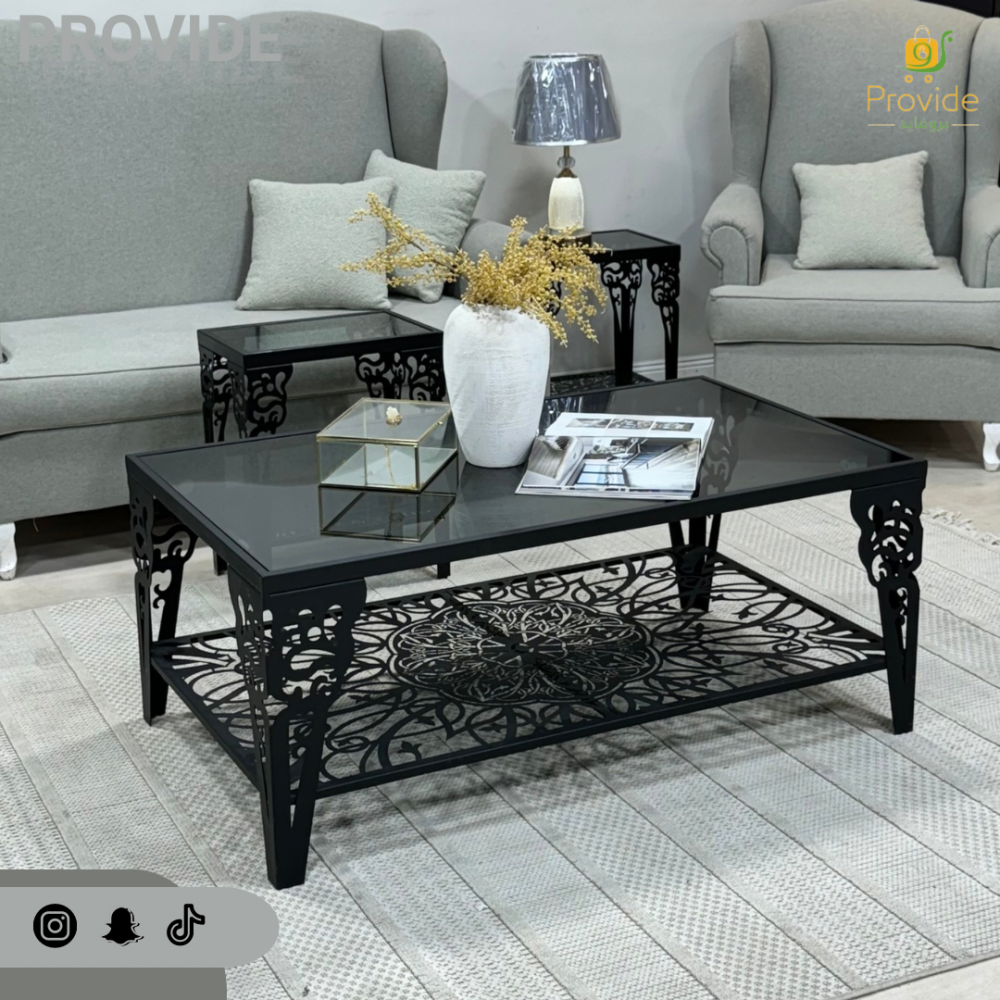 طقم طاولة تقديم مع خدمة القاعدة حديد السطح زجاج