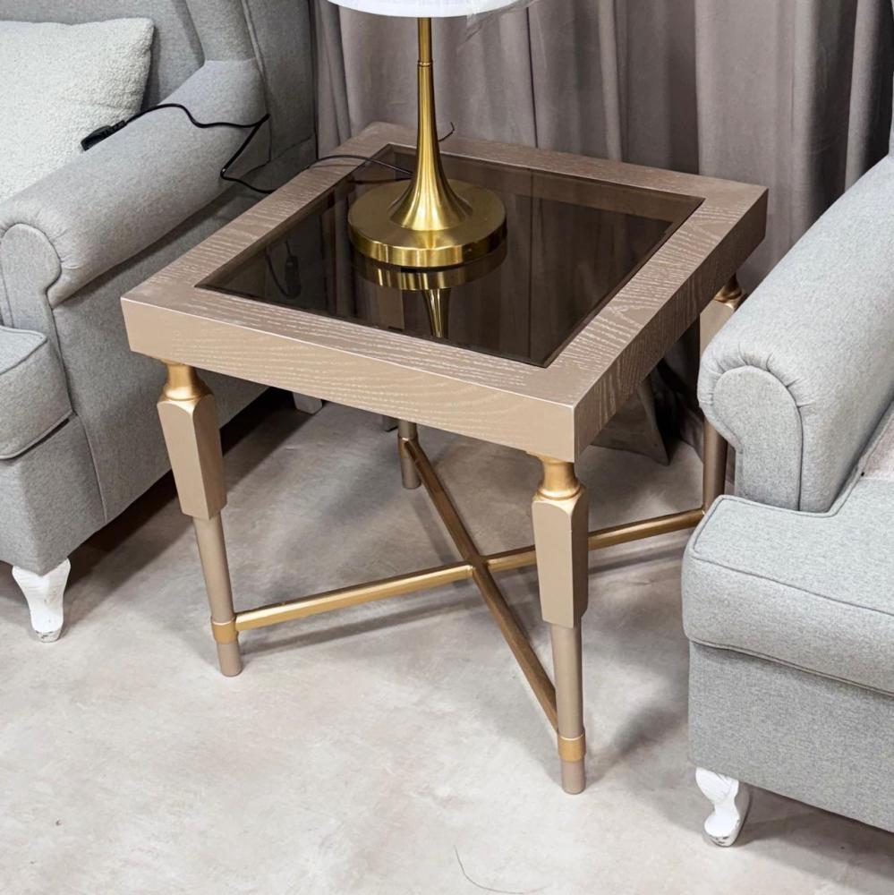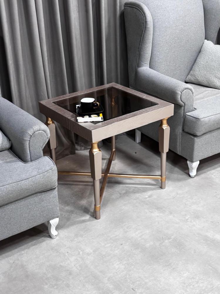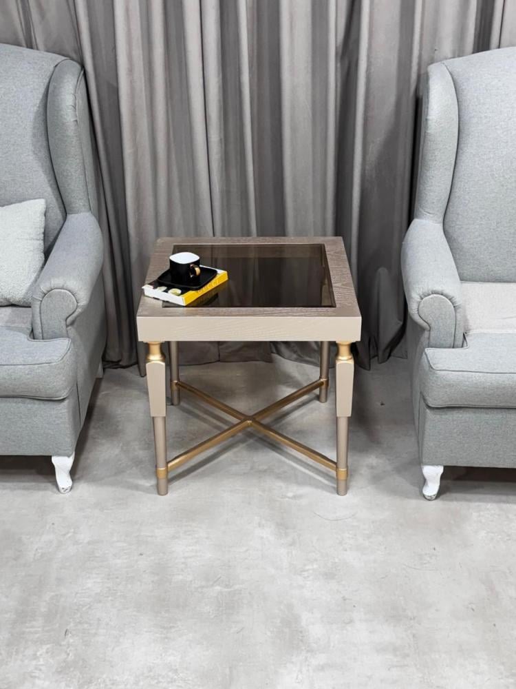 - الطاولة مربعة الشكل بسطح علوي زجاجي عسلي يعطي لمسة عصرية وفاخرة.