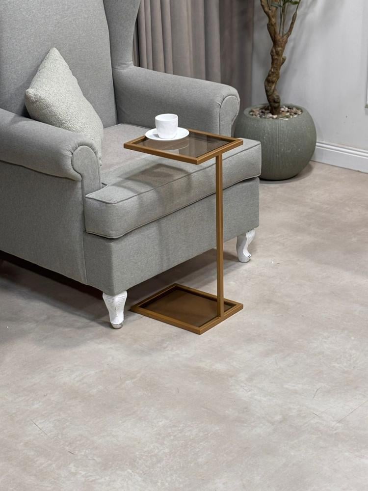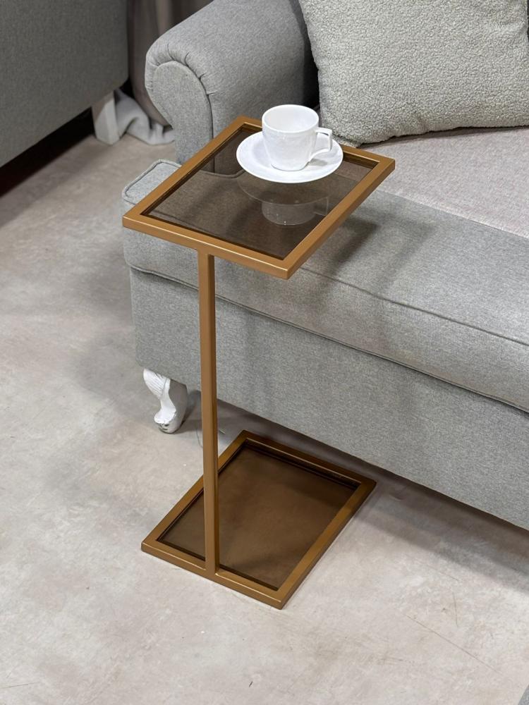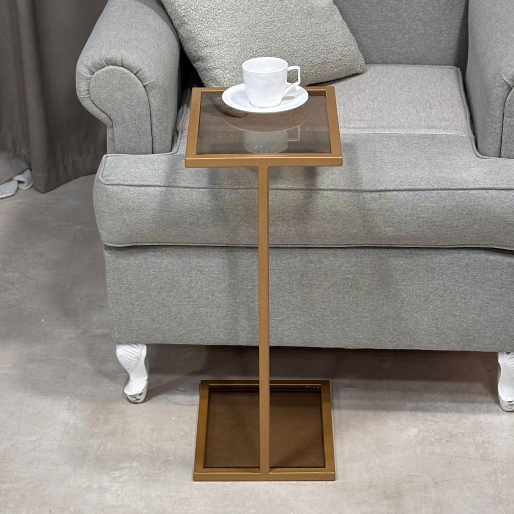 تأتي بسطح زجاجي مربع بلون عسلي مدخّن يبرز فخامتها، مدعوم بقاعدة معدنية باللون الذهبي المطفي بتصميم مستقيم وانسيابي يمنحها مظهرًا حديثًا ومتناسقًا مع مختلف الديكورات.