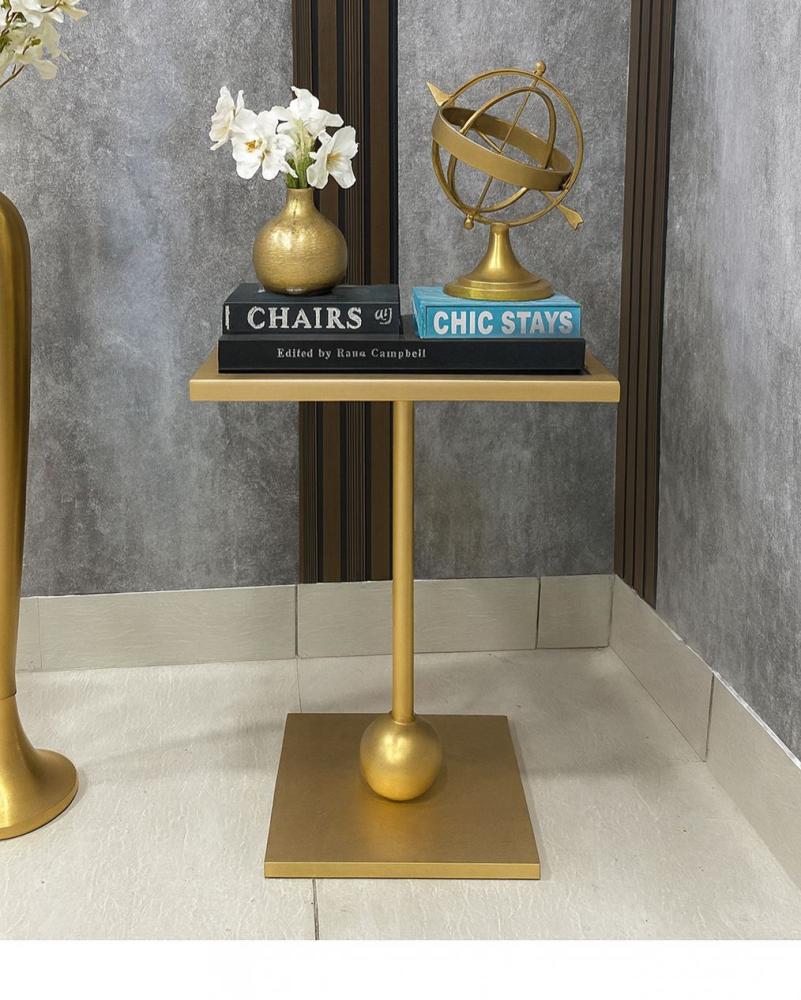 طاولة جانبية بتصميم عصري أنيق، تتميز بقاعدة معدنية باللون الذهبي تمنحها لمسة فاخرة وعصرية في آنٍ واحد. السطح العلوي مربع الشكل مصنوع من زجاج عسلي يضيف لمسة دفء وأناقة، ويوفر مساحة مثالية لوضع مزهرية، كتب أو إكسسوارات منزلية. تصميم القاعدة المرتكز على عمود نحيف متصل بكرة زخرفية يعزز من ثبات الطاولة ويمنحها مظهراً فنياً جذاباً. قطعة مثالية لإضافة لمسة من الفخامة والعملية في غرف المعيشة أو الاستقبال.