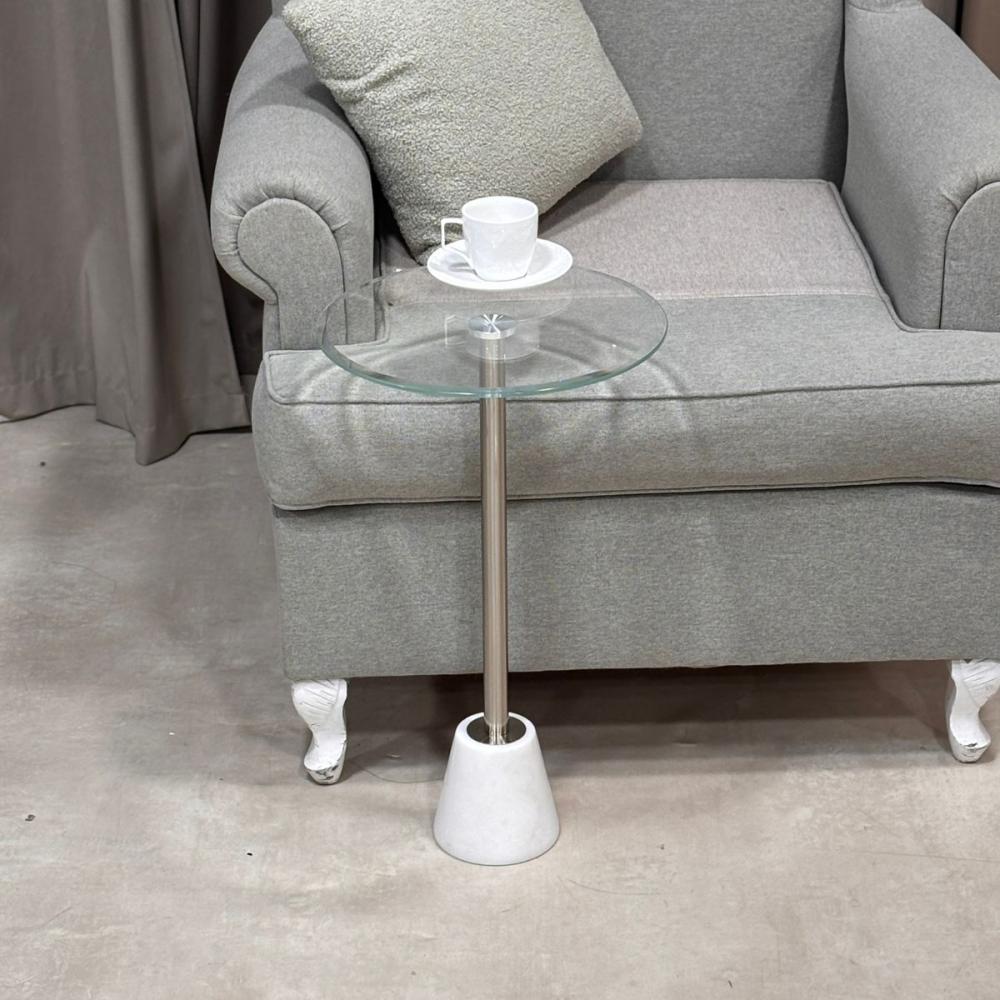 الطاولة تجمع بين الزجاج العصري والرخام الفاخر لتكون قطعة ديكور عملية وأنيقة في نفس الوقت، مثالية لوضع أكواب القهوة أو الإكسسوارات