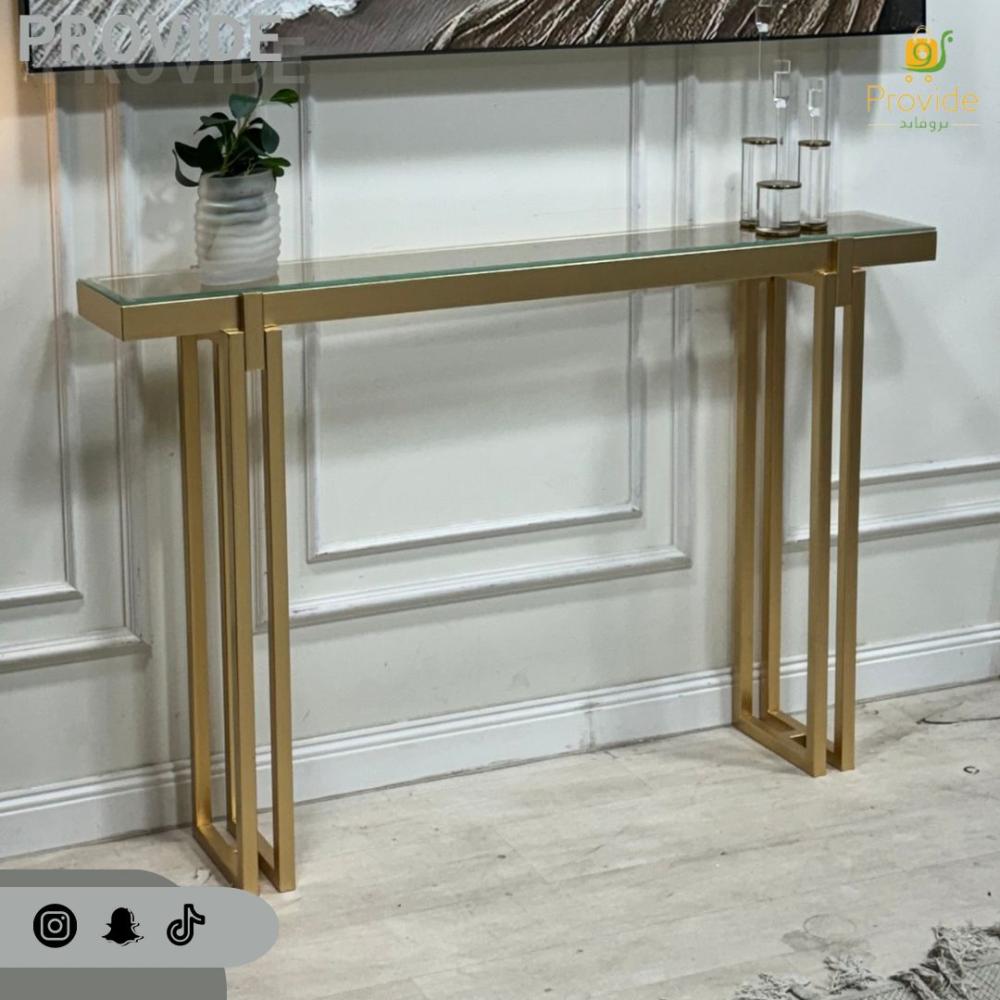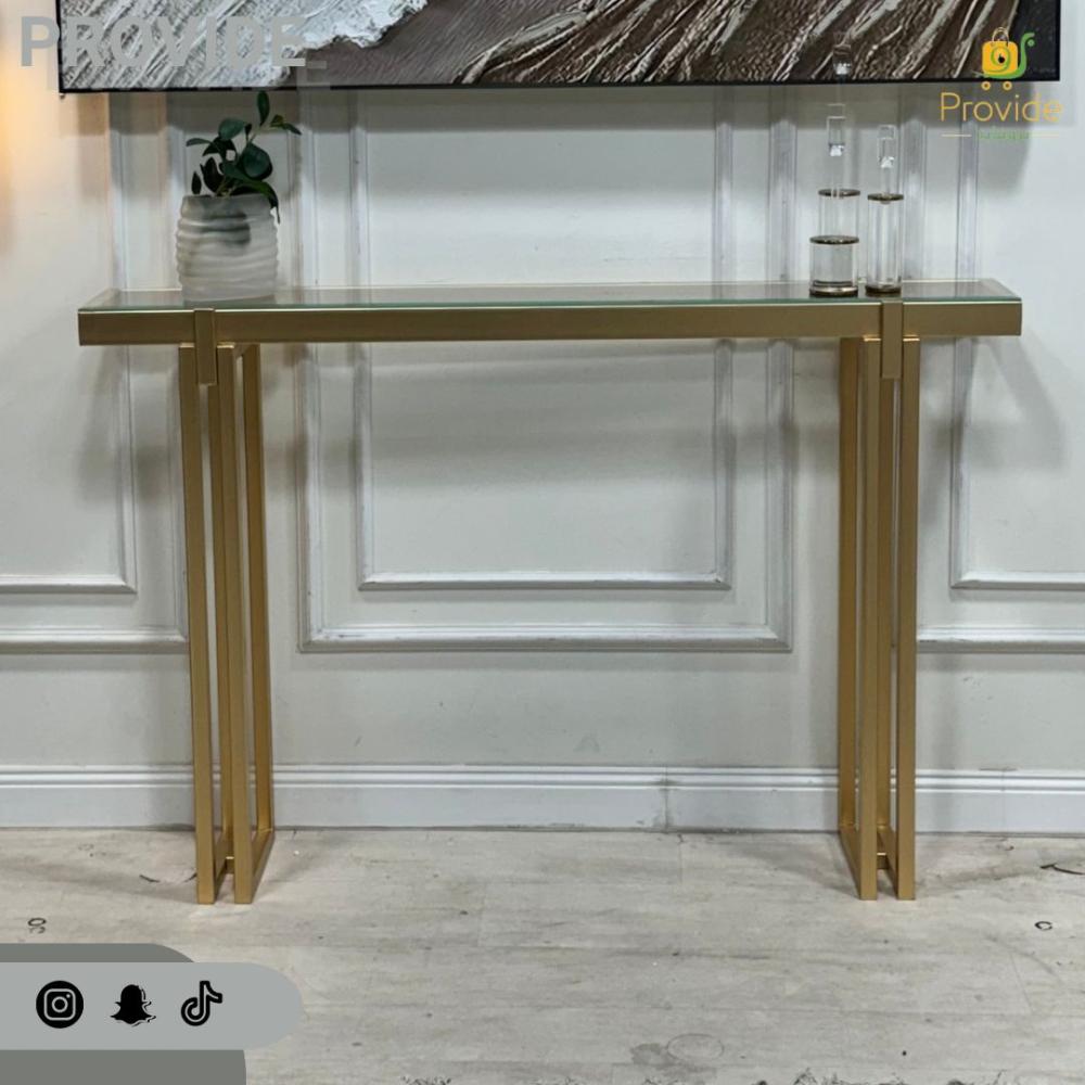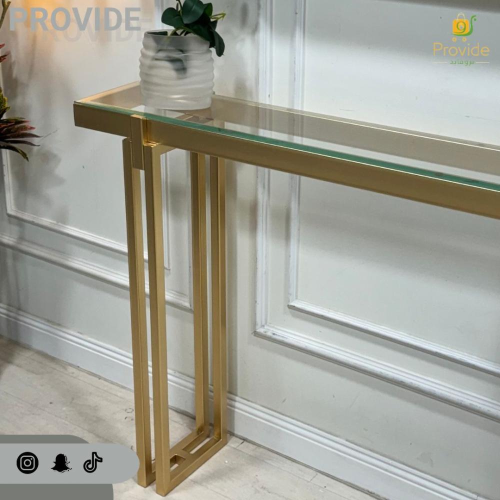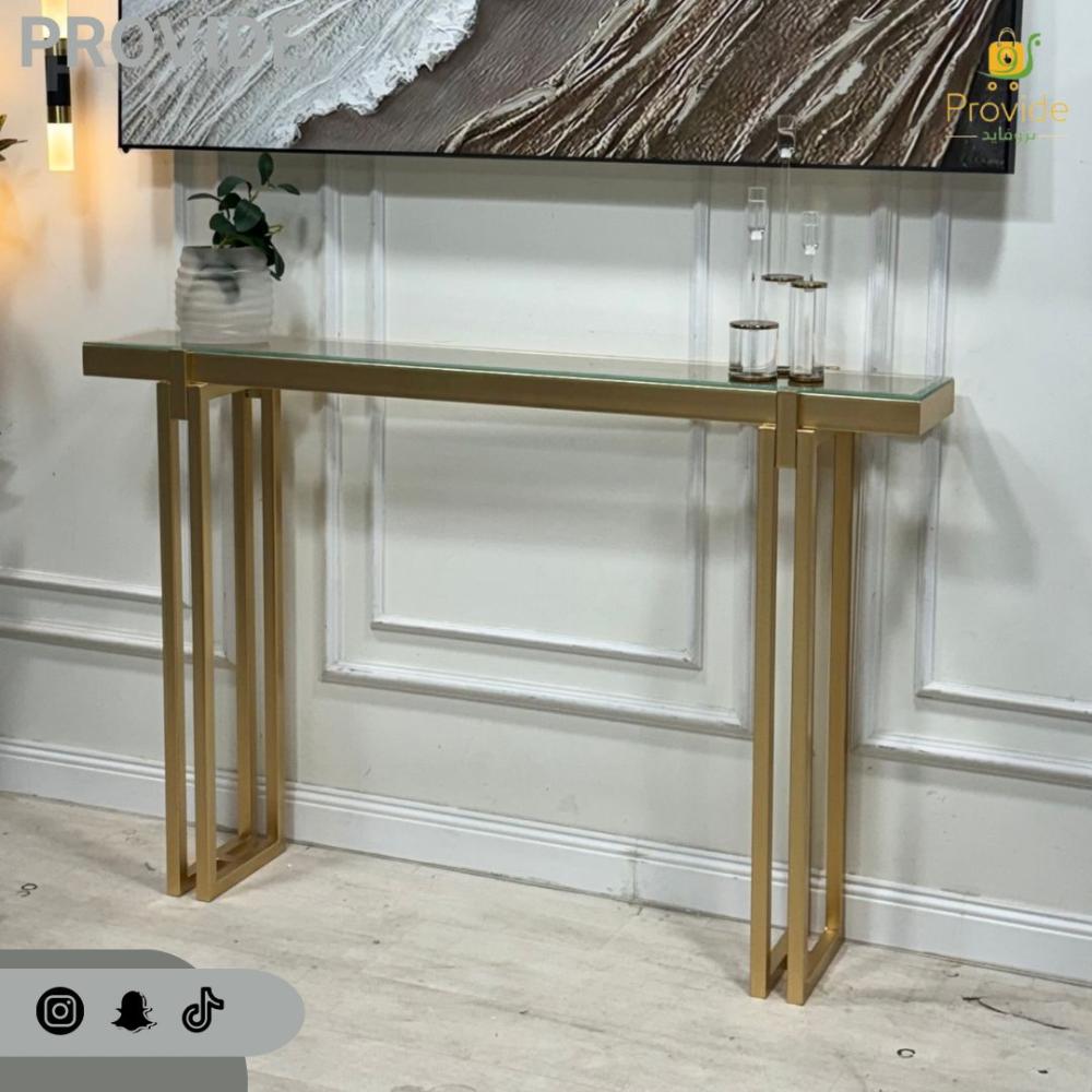 طاولة مدخل فاخرة بإطار ذهبي وسطح زجاجي"
