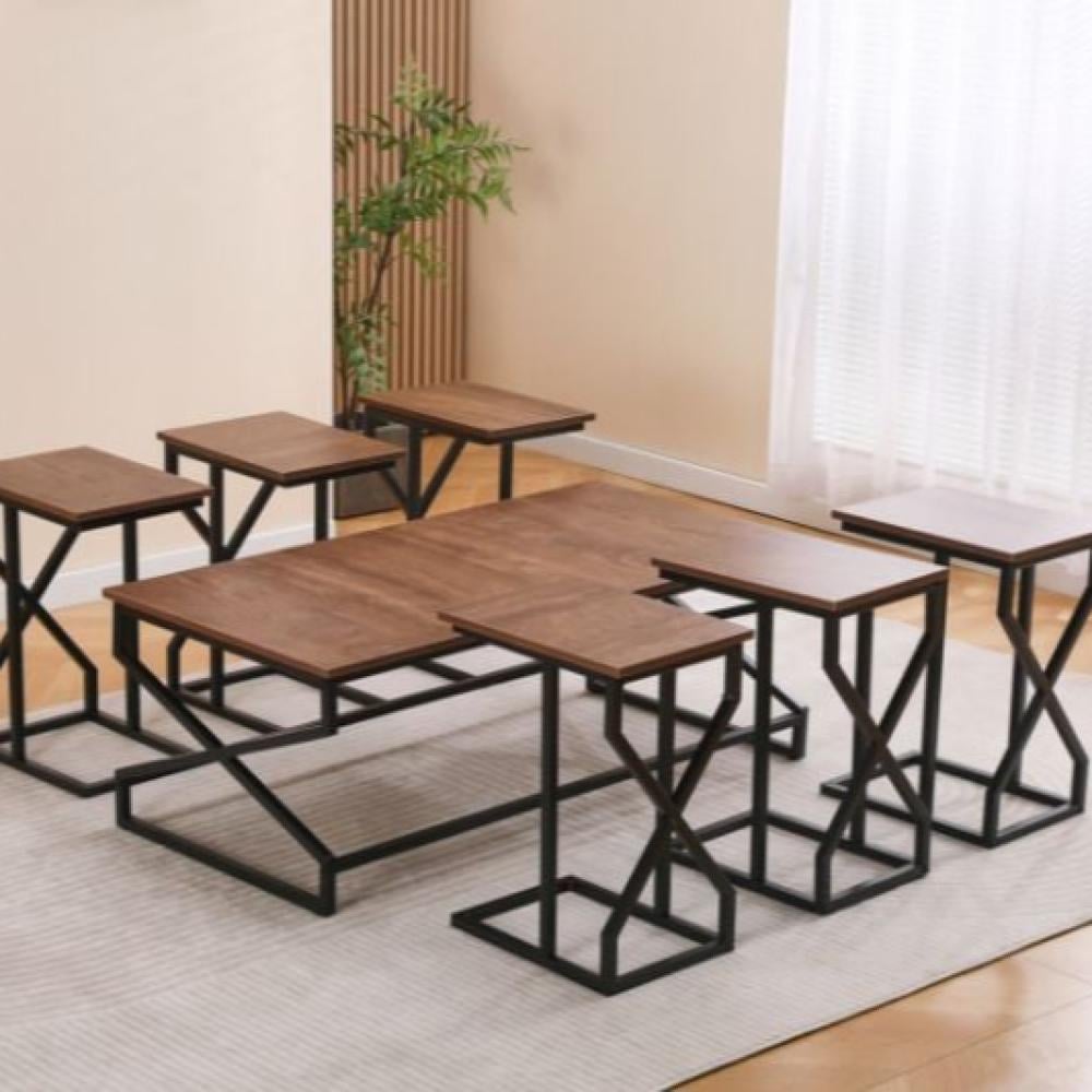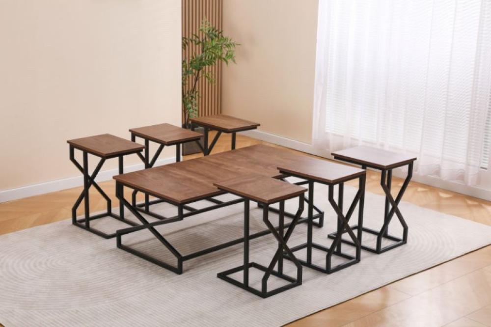 طقم الطاولات يتميز بتصميم عصري أنيق يجمع بين الخشب والمعدن: