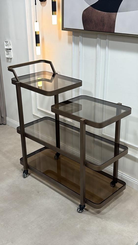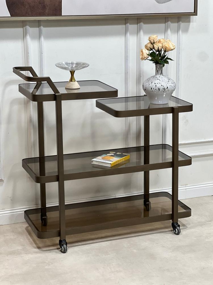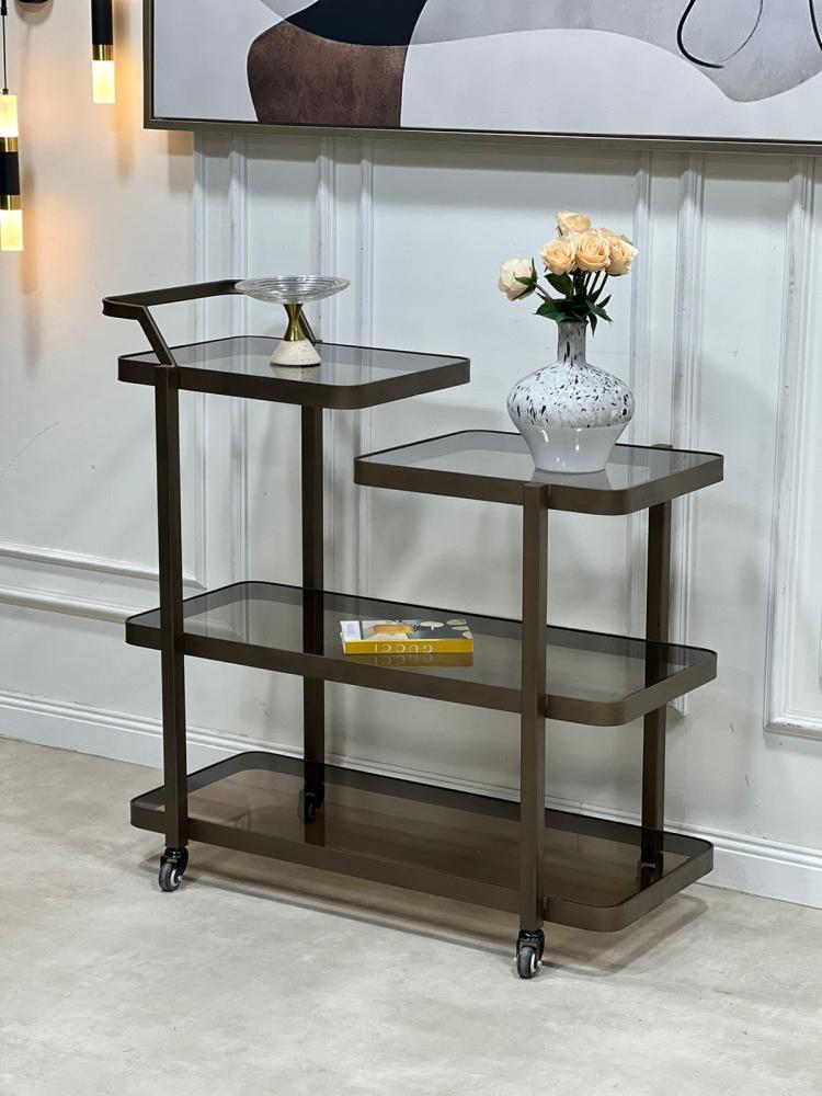 3. عربية تقديم اربعه رفوف بتصميم عصري ولون بني مطفي
