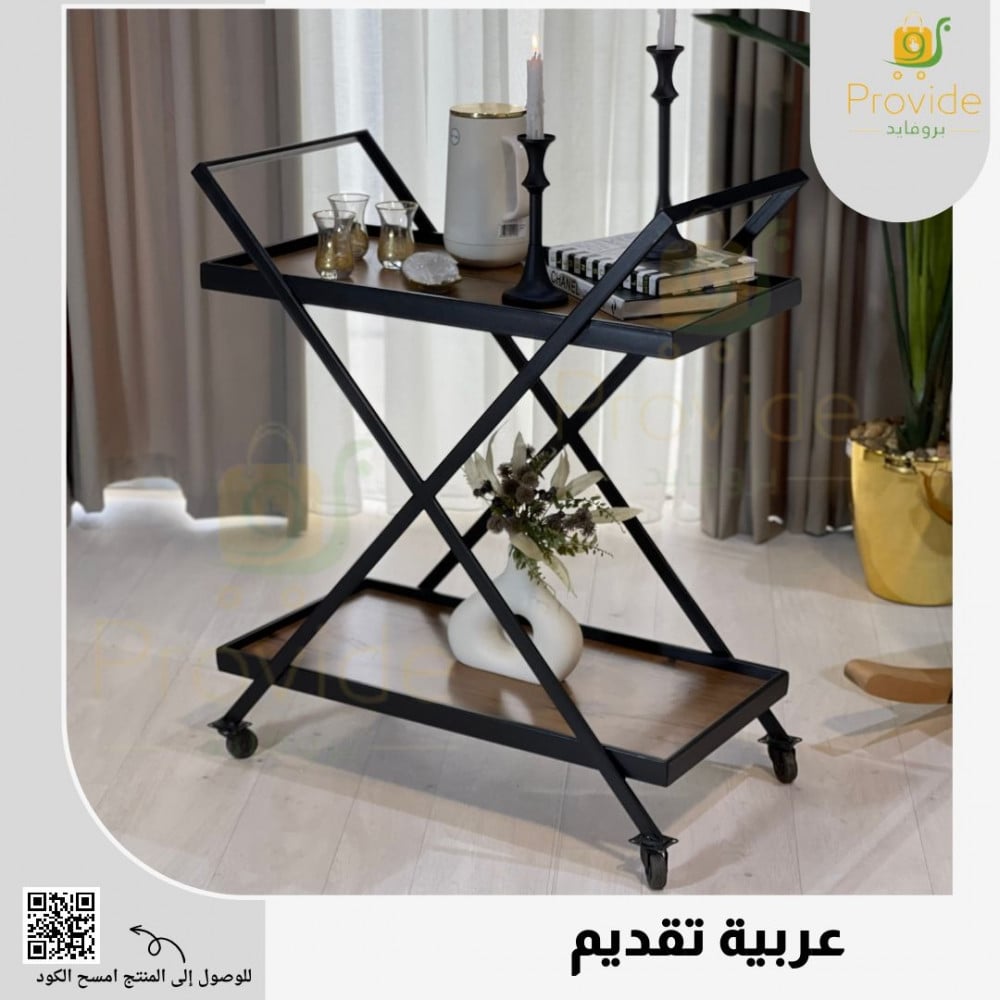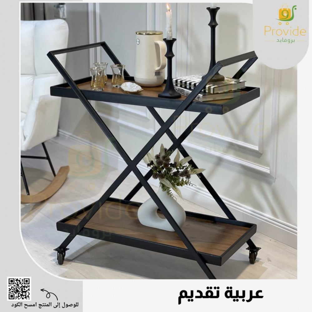 اجعل لحظات الضيافة أكثر أناقة وعملية مع عربة التقديم الفاخرة بتصميم عصري على شكل حرف "X". تجمع هذه العربة بين الهيكل المعدني الأسود القوي والأسطح الخشبية الفاخرة بلون بني دافئ، لتضفي لمسة ديكور مميزة في أي مساحة.