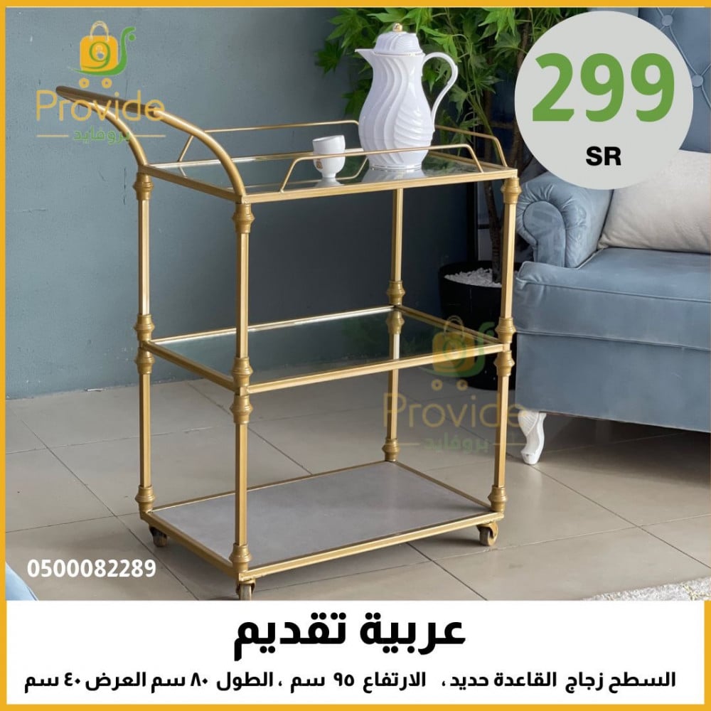 عربية تقديم بثلاثة رفوف – تصميم أعمدة كلاسيكي ذهبي