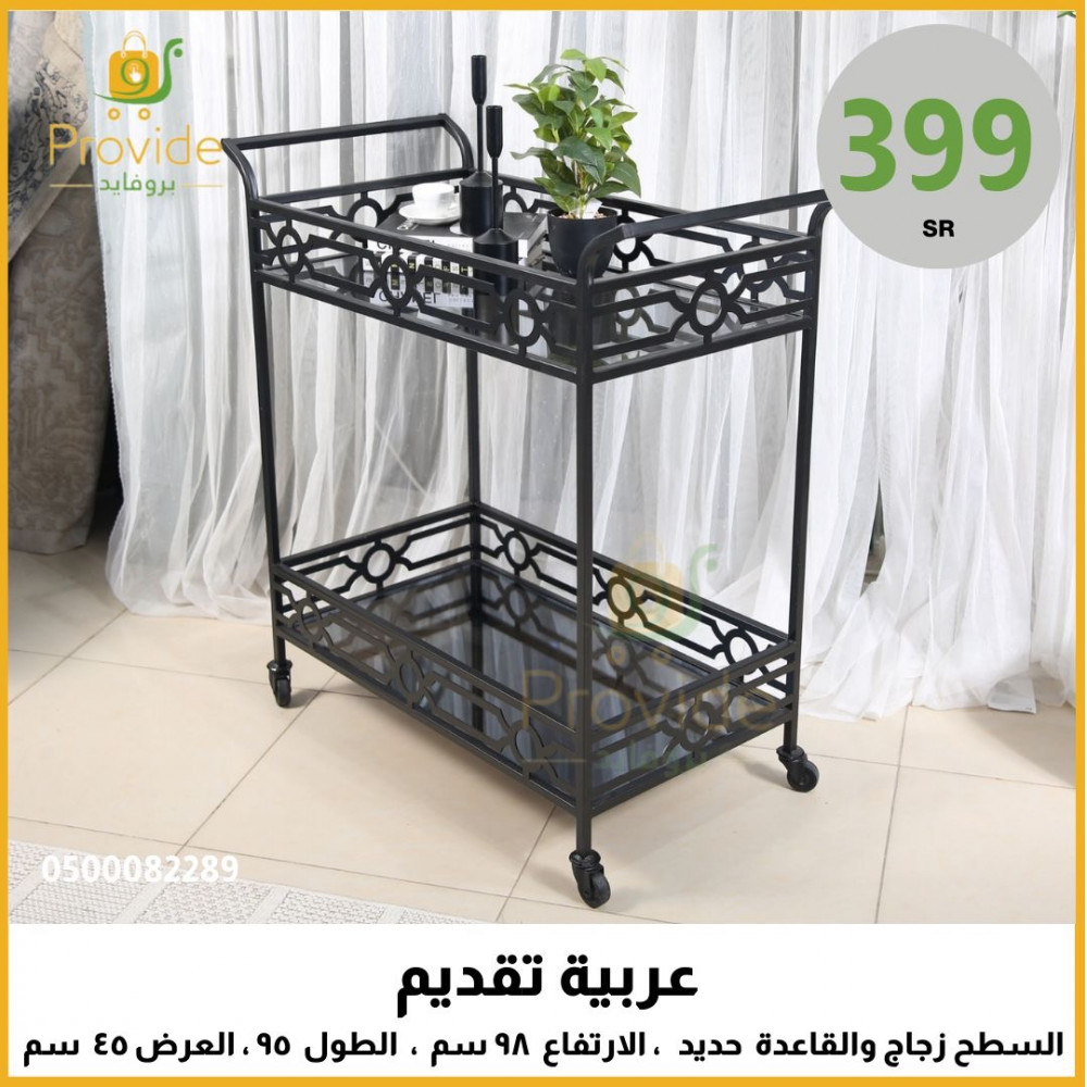 ارتقِ بتجربة الضيافة في منزلك مع هذه العربة الفاخرة ذات التصميم الراقي. تأتي بإطار حديدي بنقوش زخرفية جذابة، وسطح زجاجي عملي، لتكون إضافة مثالية في المجالس أو المناسبات.