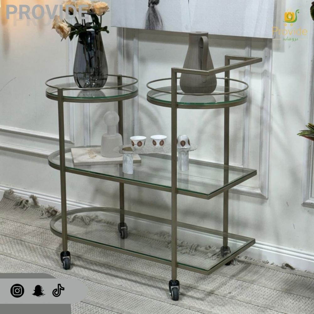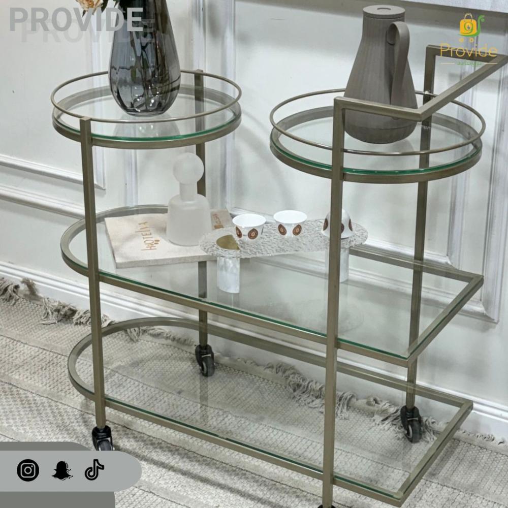 عربية تقديم زجاجية بتصميم دائري مزدوج – ستايل عصري أنيق