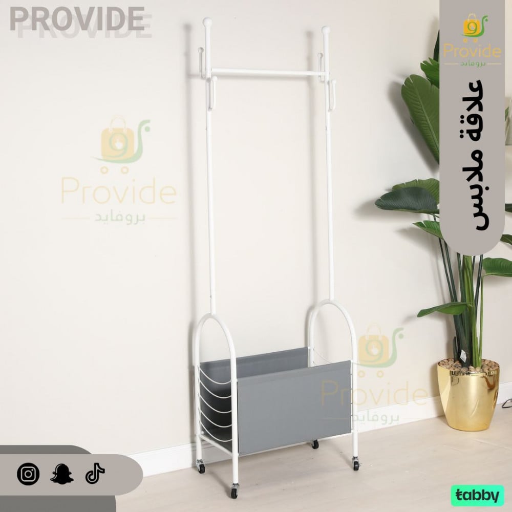 علاقة ملابس مع سلة تخزين متحركة 🧥✨