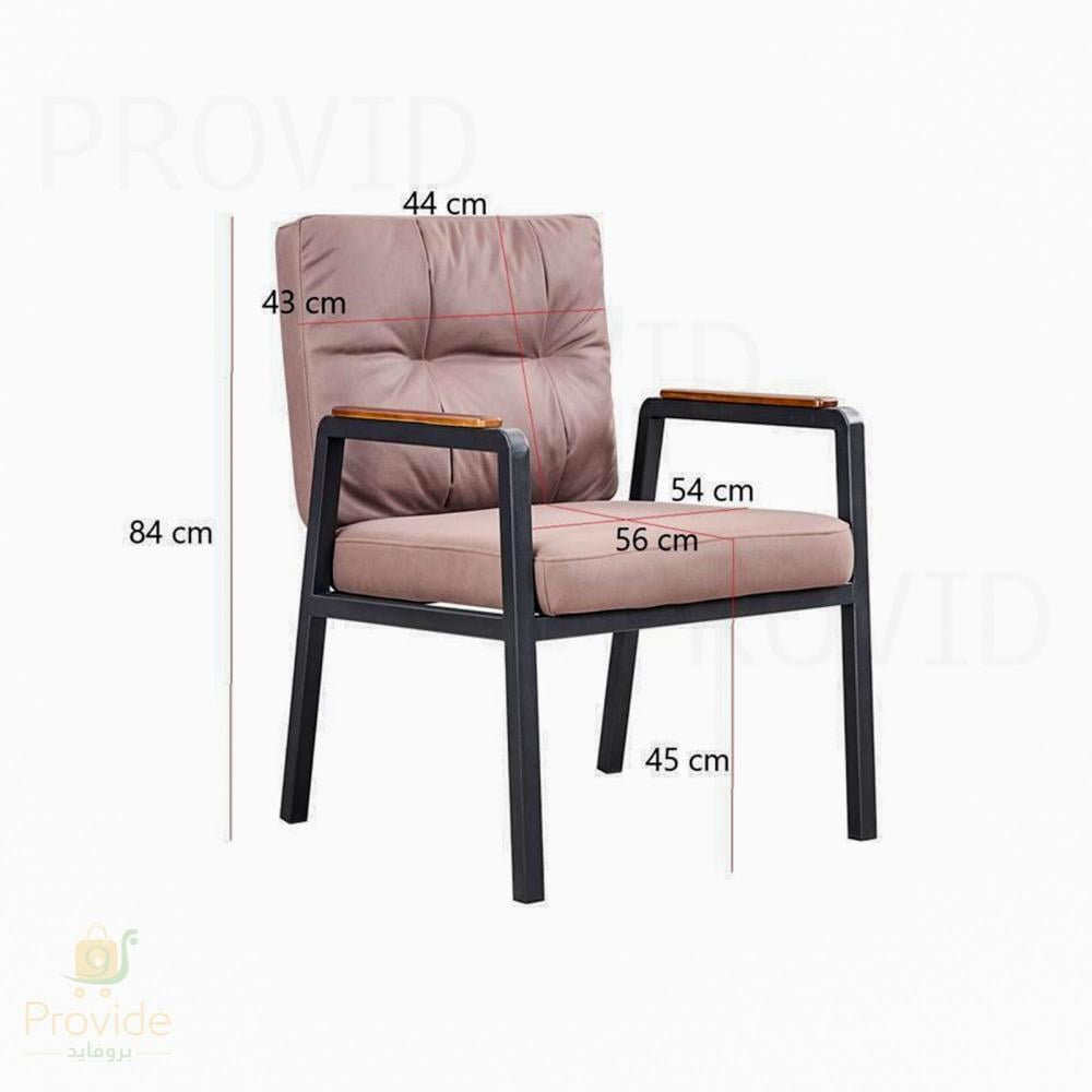 - التصميم: كرسي مبطن بوسادة مريحة للظهر والمقعدة مع مساند يد خشبية تضيف لمسة جمالية.