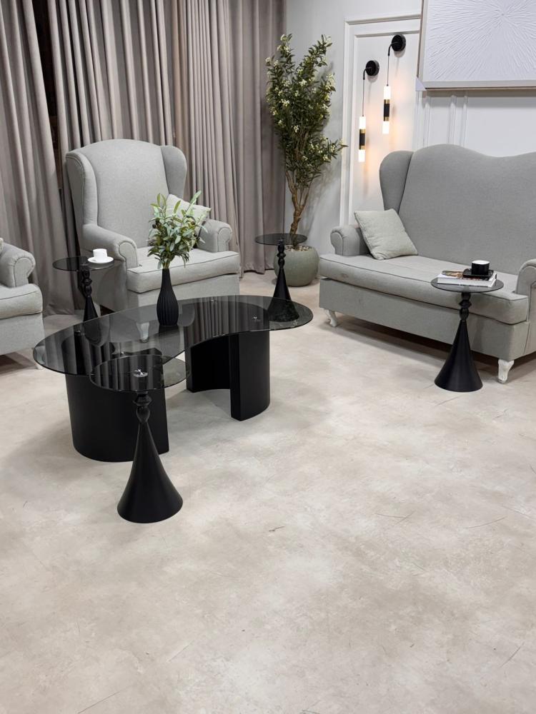 طقم طاولة تقديم مع 4 خدمة السطح زجاج اسود