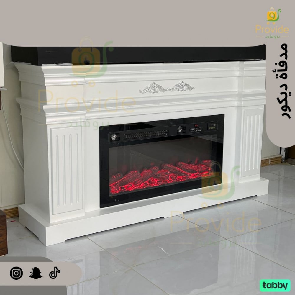 اجعل منزلك ملاذًا دافئًا مع هذه الدفاية البلازما البيضاء الفاخرة، تصميم صخري طبيعي وسطح خشبي راقٍ!