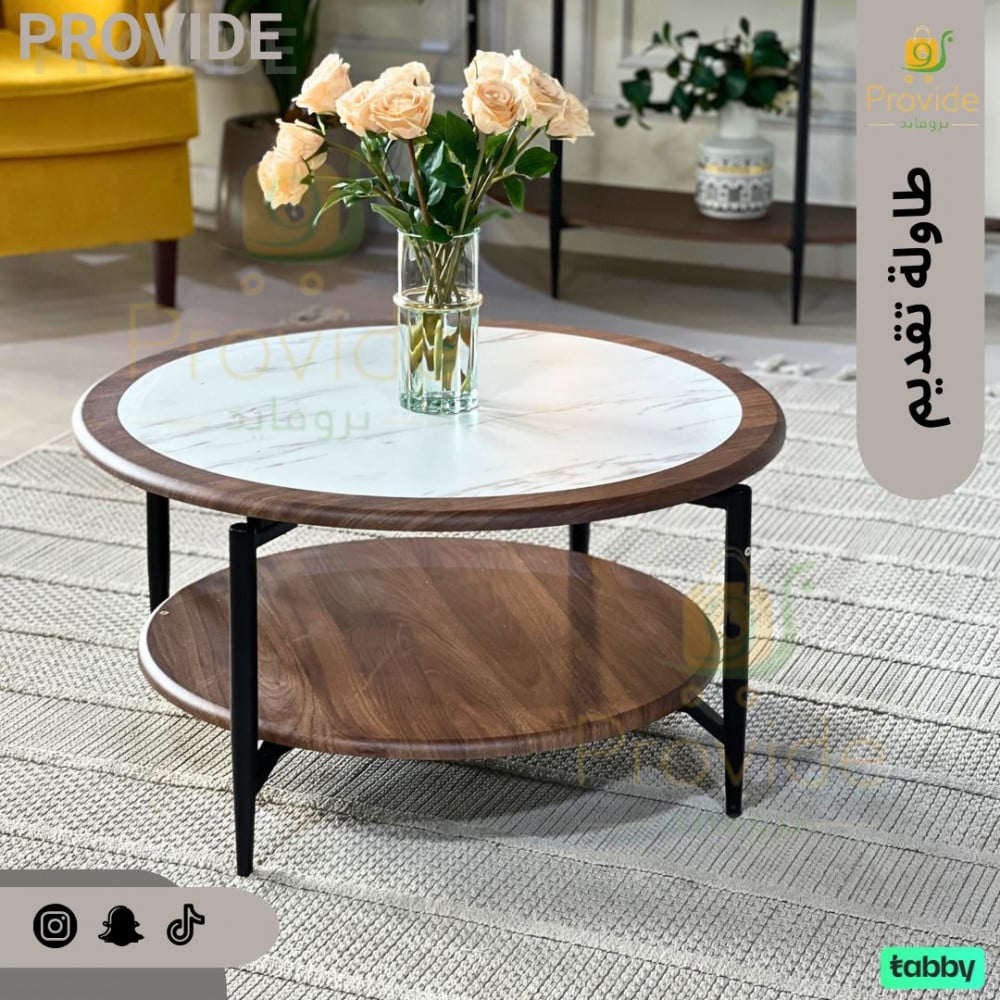 تجمع الطاولة بين الجمال والوظيفة بفضل الطبقتين المختلفتين، مما يتيح لك مساحة إضافية لتخزين الكتب أو عرض الزينة والإكسسوارات. السطح الخشبي العلوي يضيف إحساسًا بالفخامة والراحة في الغرفة، بينما الطبقة السفلية الخشبية تعزز من الوظائف العملية للطاولة.