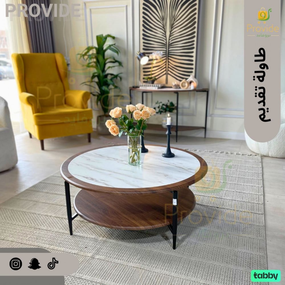 - مواد عالية الجودة: السطح الخشبي والقاعدة الخشبية القوية يضمنون استمرارية الطاولة ومتانتها للاستخدام اليومي مع الحفاظ على مظهرها الجذاب.
