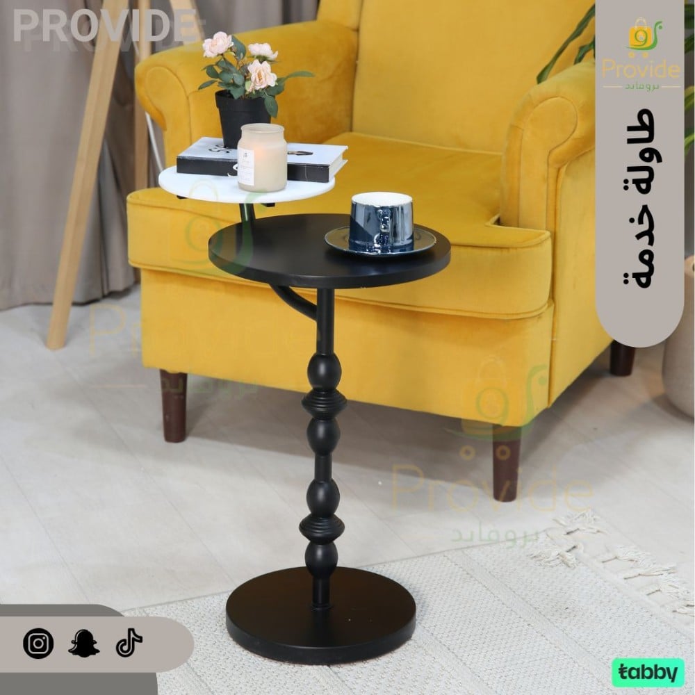 - استخدامات متعددة: يمكن استخدامها كطاولة خدمة بجانب الأريكة أو السرير، مما يجعلها مثالية لتقديم المشروبات أو وضع الكتب.