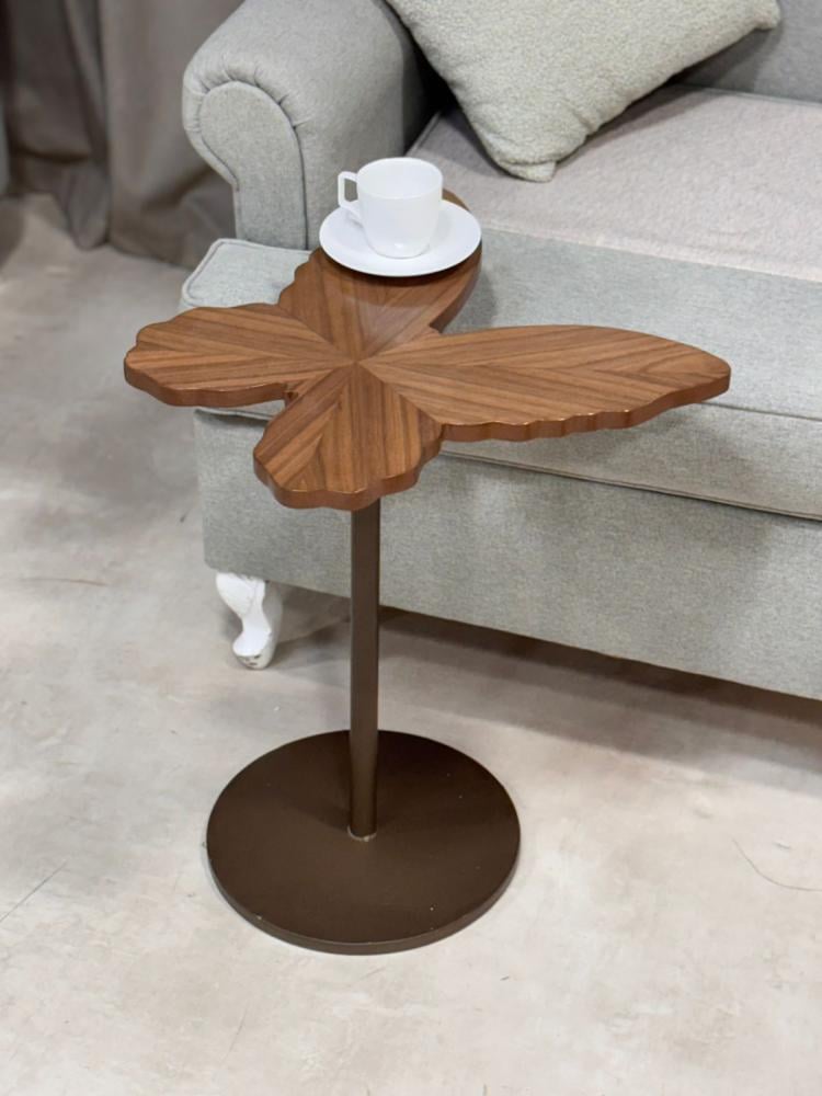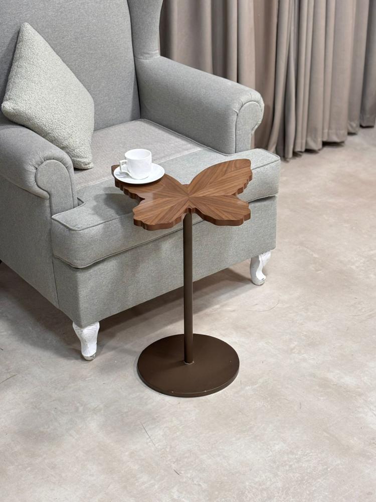 هذه طاولة خدمة أنيقة وعصرية بتصميم فريد يشبه ورقة الشجر أو الفراشة، ما يمنحها طابعًا فنيًا مميزًا.