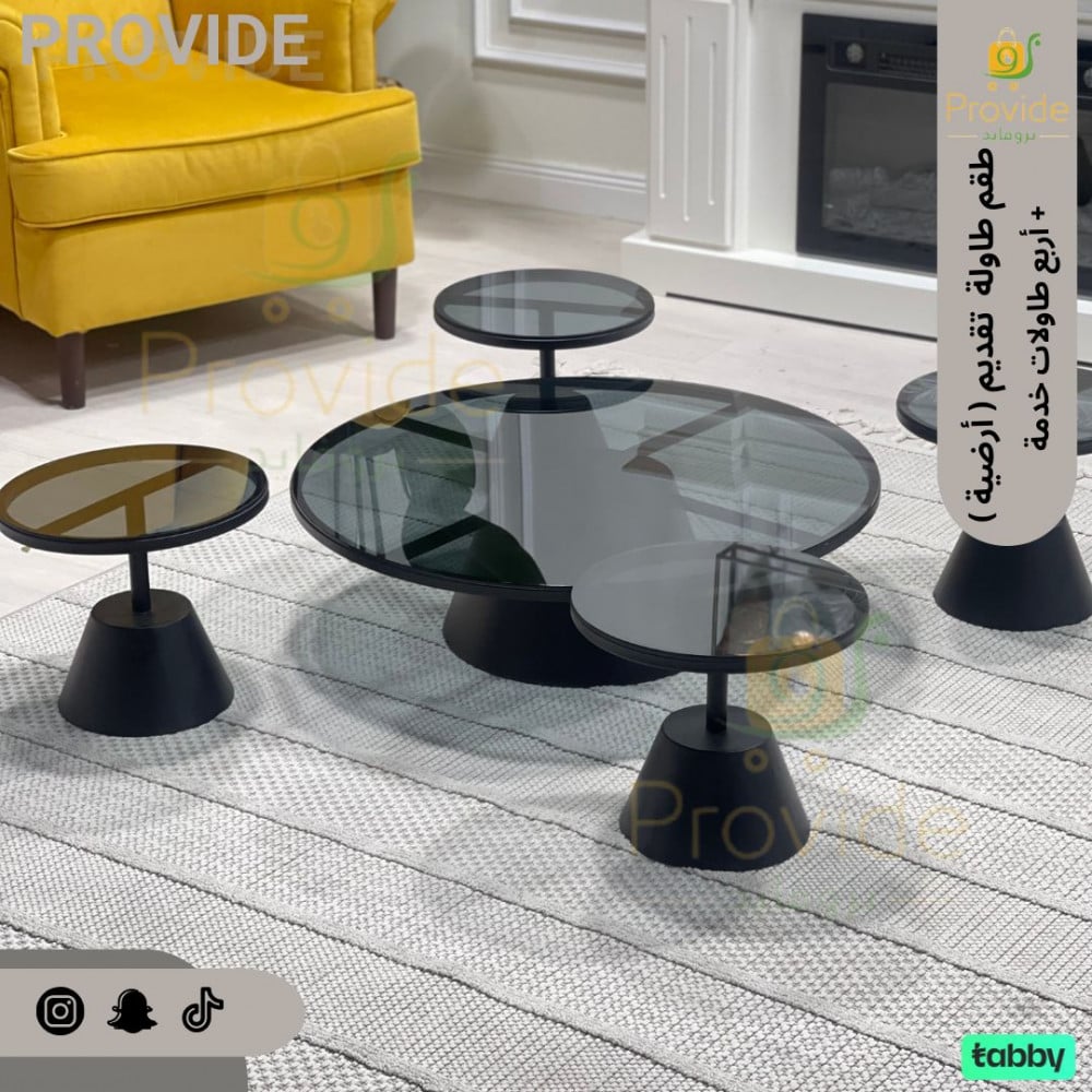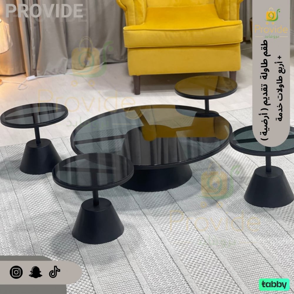 طقم طاولة 4خدمة زجاجي أسود وهيكل معدني