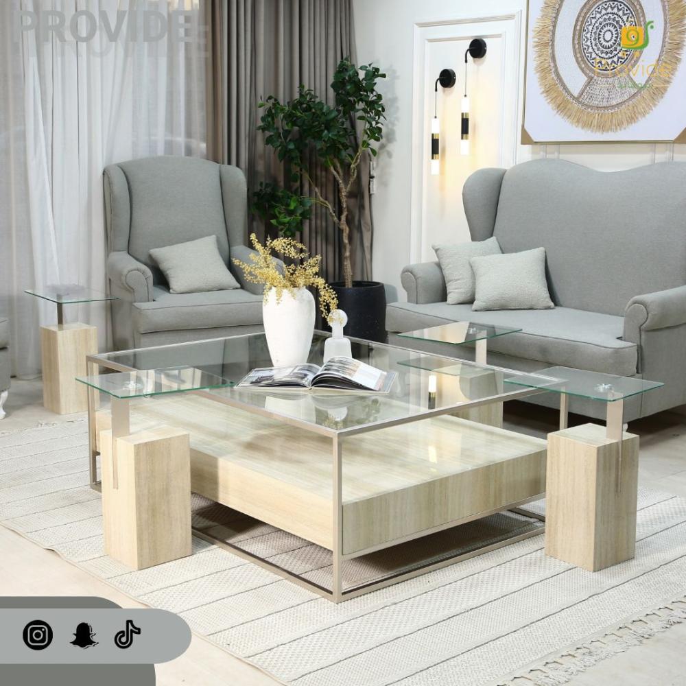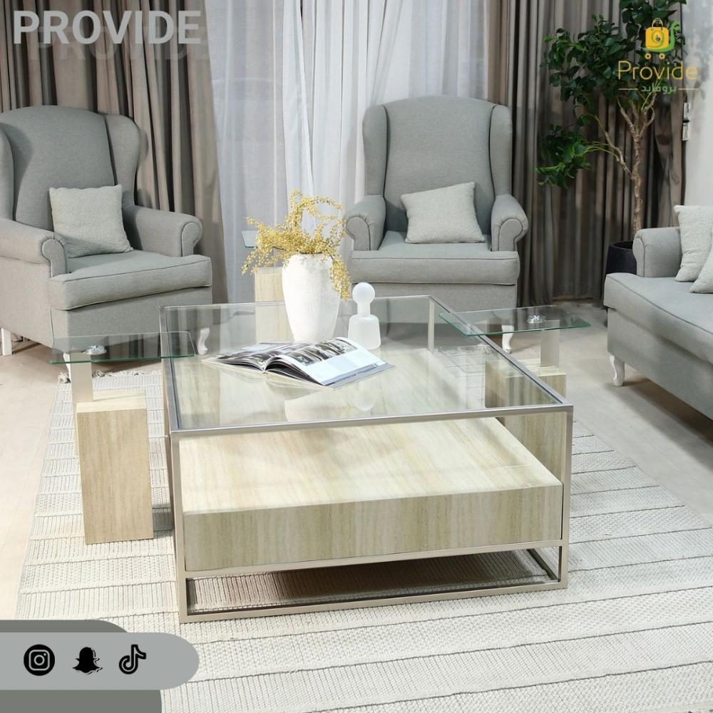 أضف لمسة من الفخامة والتميز إلى غرفة المعيشة مع هذا الطقم الأنيق. يتكون من طاولة تقديم رئيسية بأبعاد واسعة وأربع طاولات خدمة جانبية. يتميز بتصميم عصري يجمع بين السطح الزجاجي الشفاف والإطار المعدني القوي مع قاعدة من بديل الرخام، ما يمنحه مظهرًا راقيًا وسهولة في التنظيف. مناسب للاستخدام اليومي والمناسبات الخاصة.