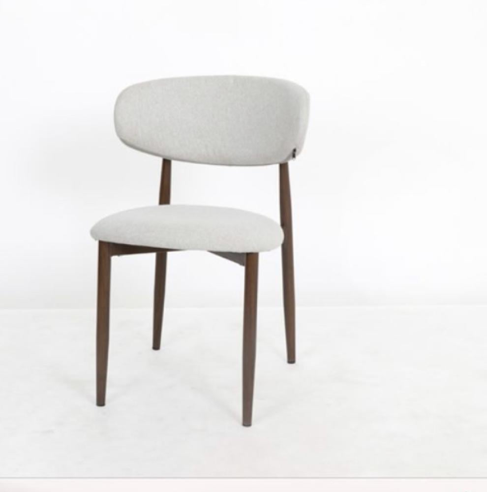 الكرسي يتميز بتصميم حديث وأنيق، مع مقعد ومسند ظهر مبطن بالقماش المخمل بلون رمادي فاتح. الأرجل الخشبية الداكنة تضفي لمسة دافئة على التصميم، مما يجعله مثالياً للأماكن التي تحتاج إلى مزيج من البساطة والراحة. تصميمه المناسب للمساحات الصغيرة أو المفتوحة يجعله خيارًا مثاليًا لغرف الطعام، المكاتب، أو حتى الأماكن التي تتطلب أثاثًا عصريًا ومريحًا.